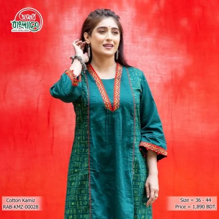 - Product Details: This cotton women’s single kamiz features Screen-Print & patch-Work.