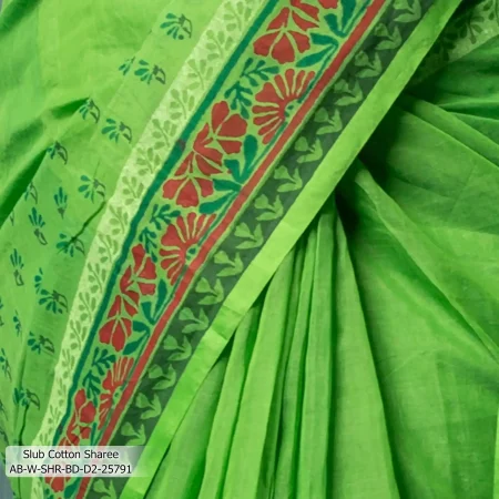 - Product Details: This Slub-Cotton sharee features Screen-Print & Hand-Work .