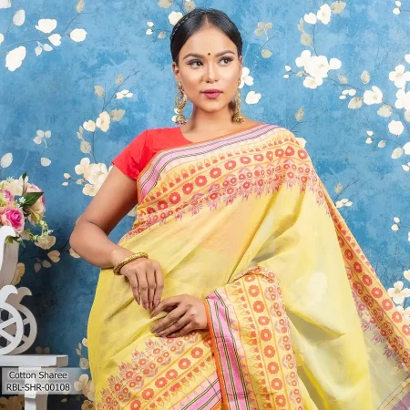 - Product Details: This cotton sharee features block-print, patchwork & handwork.