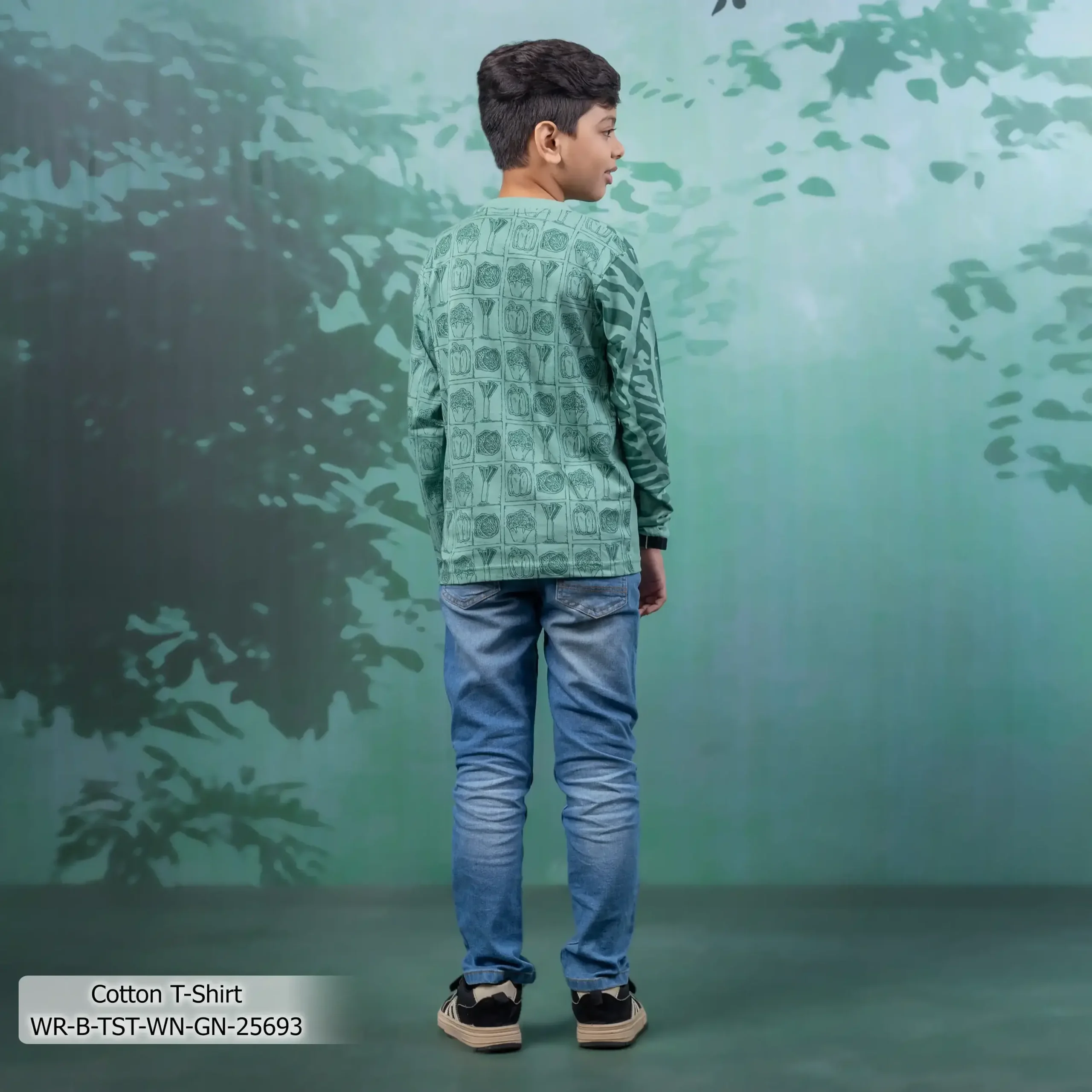 - Product Details: This Cotton boy’s full-sleeve t-shirt features screen-print work.