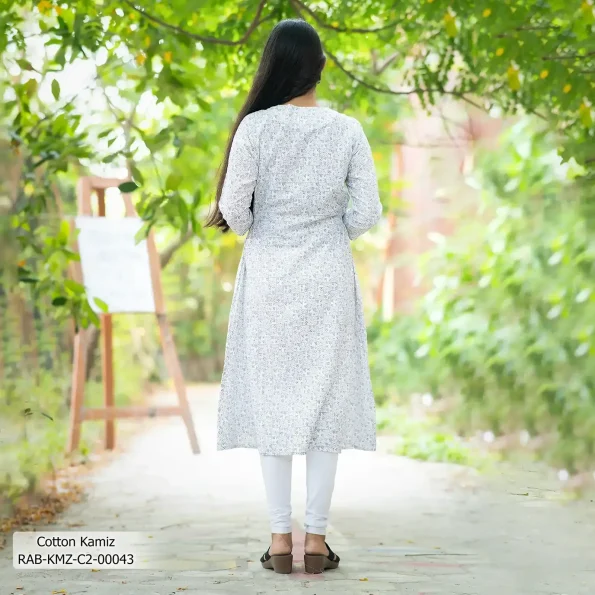 - Product Details: This cotton women’s single kamiz features screen-print work.