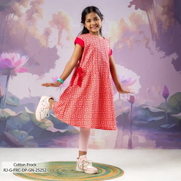 - Product Details: This Cotton frock features Screen-Print & Patch-work.