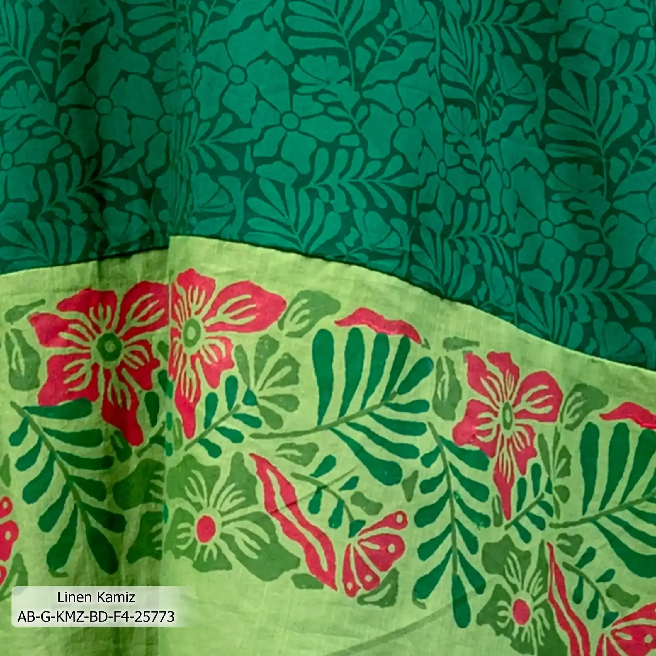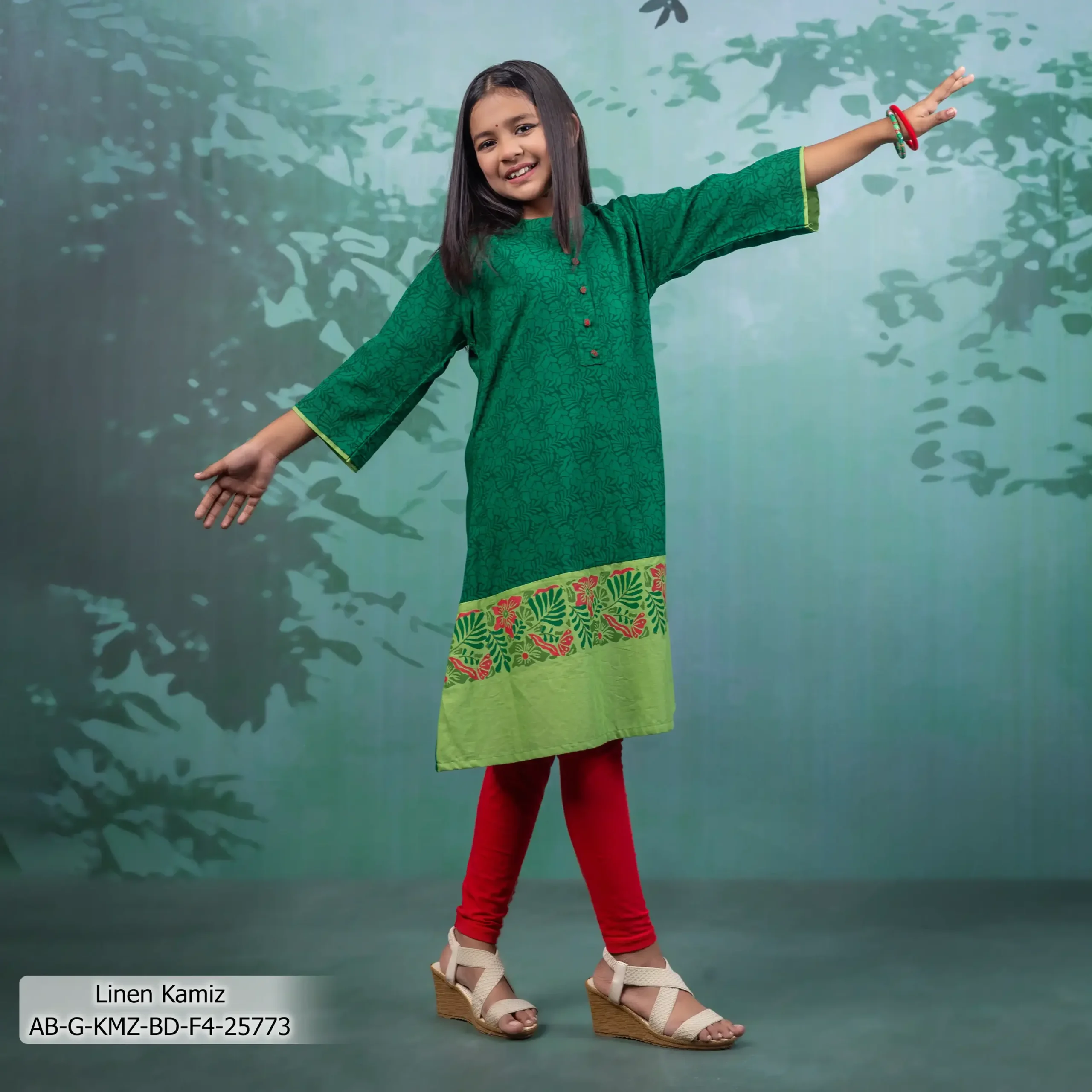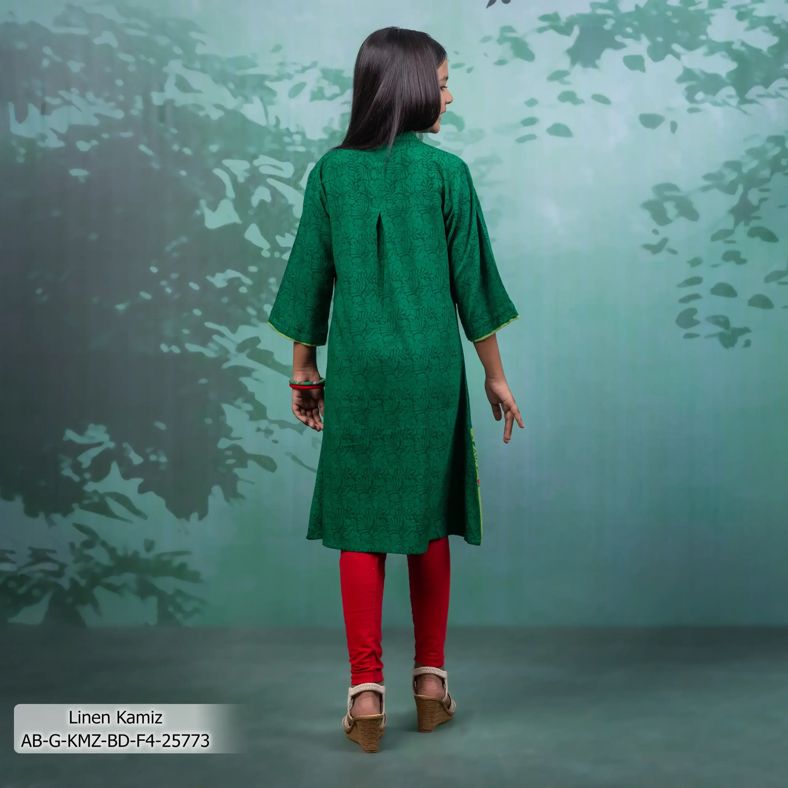 - Product Details: This Linen girl’s single kamiz features screen-print.