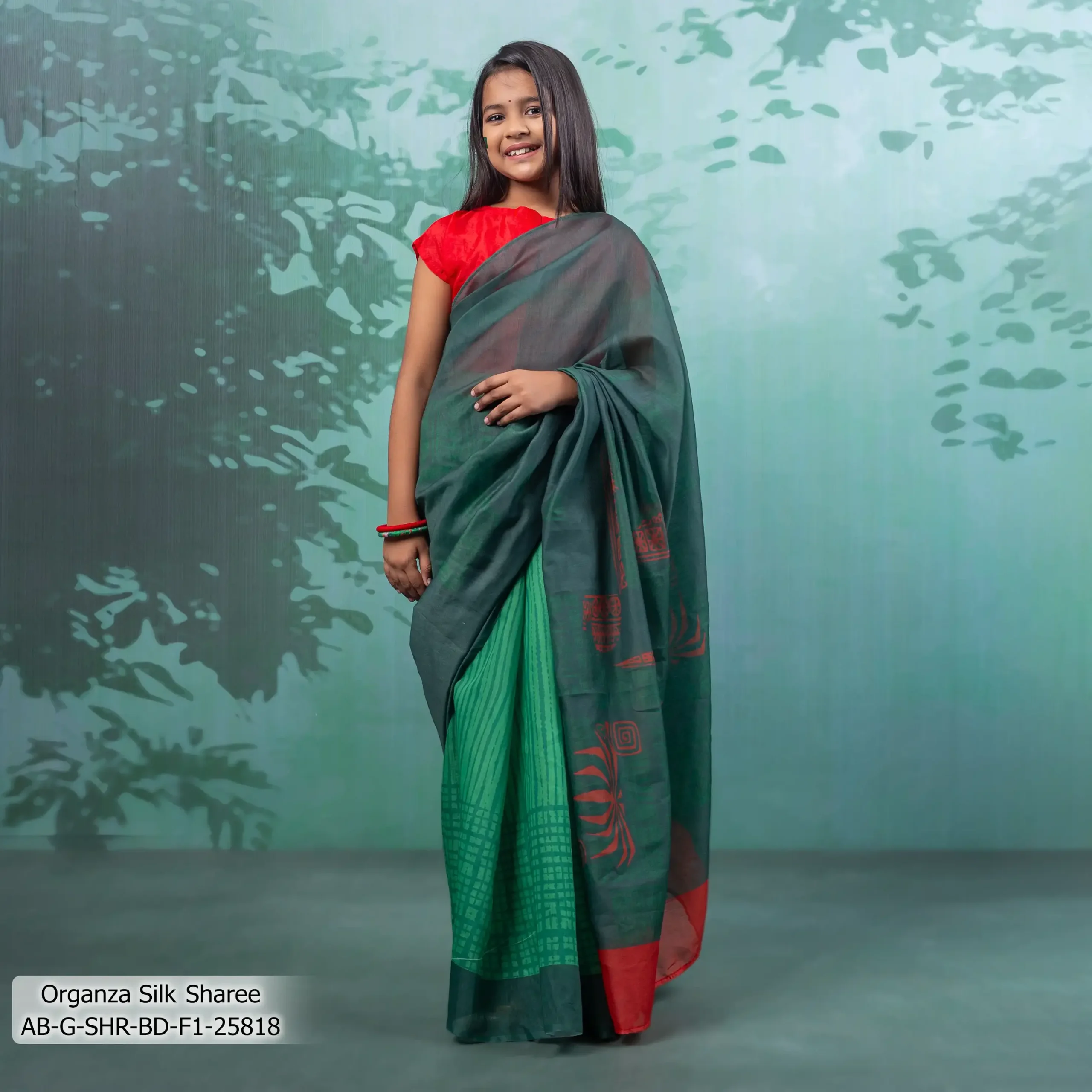 - Product Details: This Organza-Silk girl’s sharee features Digital-Print .