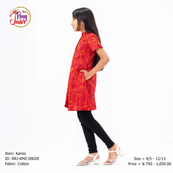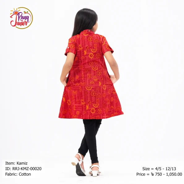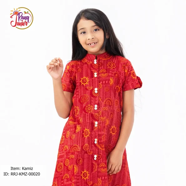 - Product Details: This Cotton girl’s single kamiz features screen-print work.