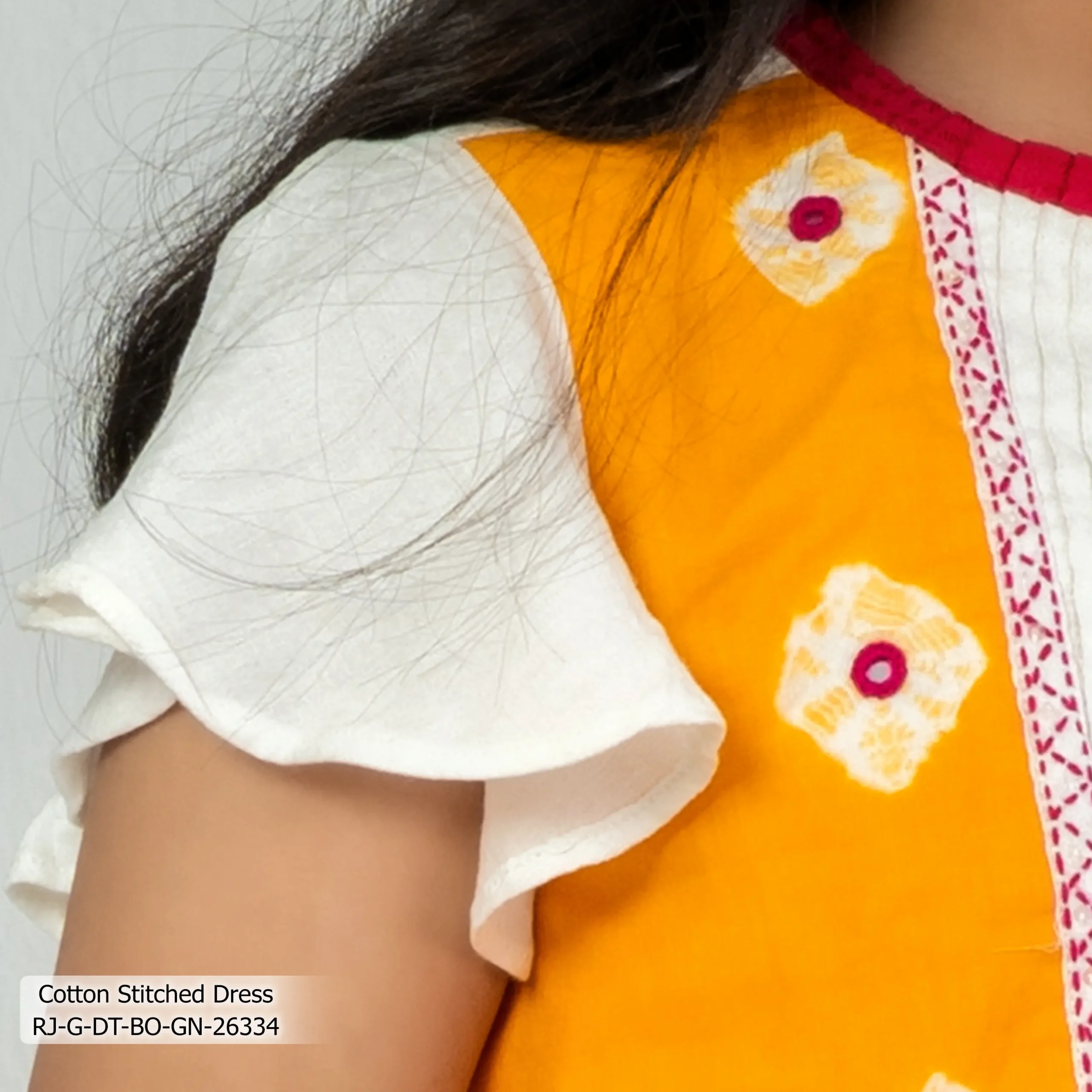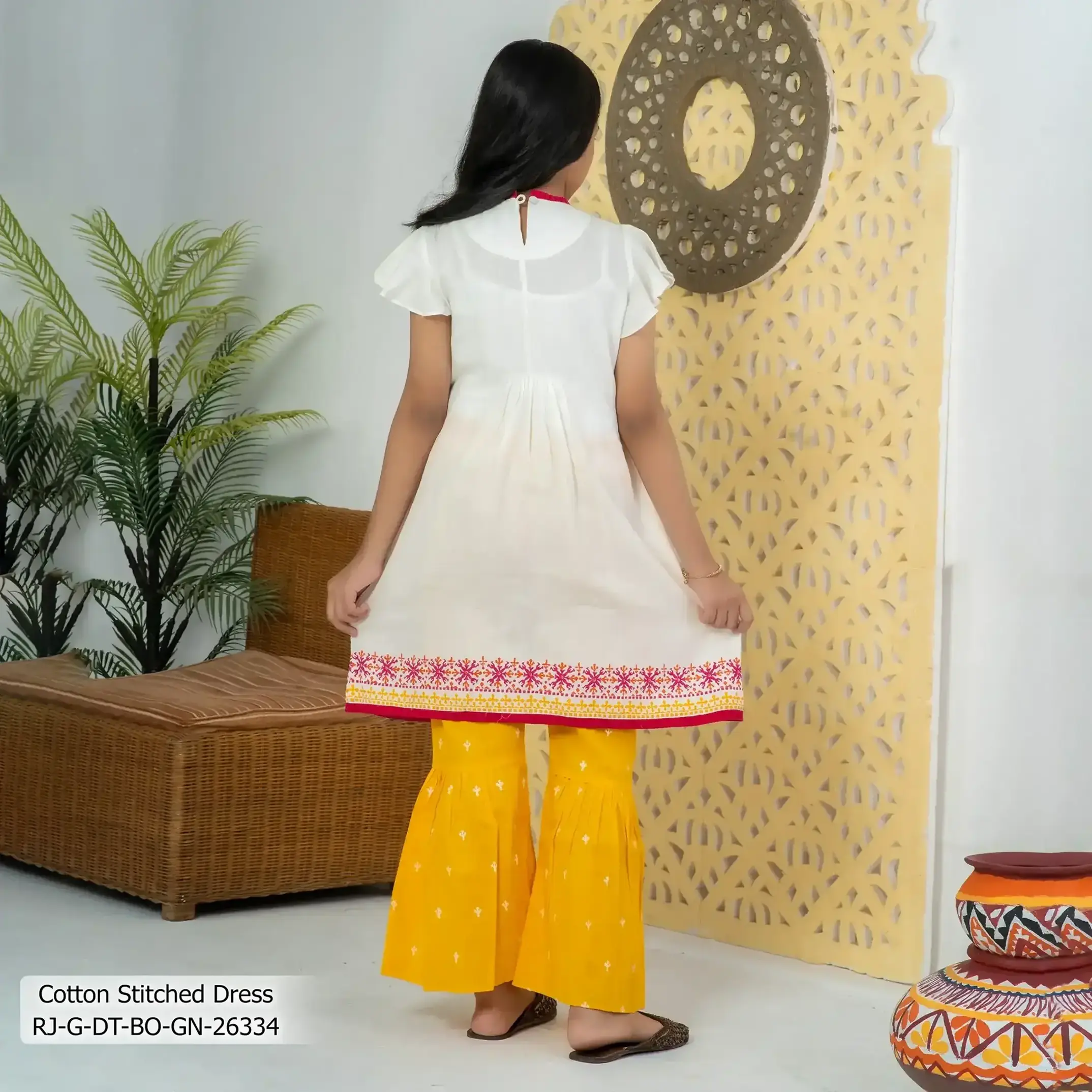 - Product Details: This Cotton girl’s dress features Block-print & hand-Work.