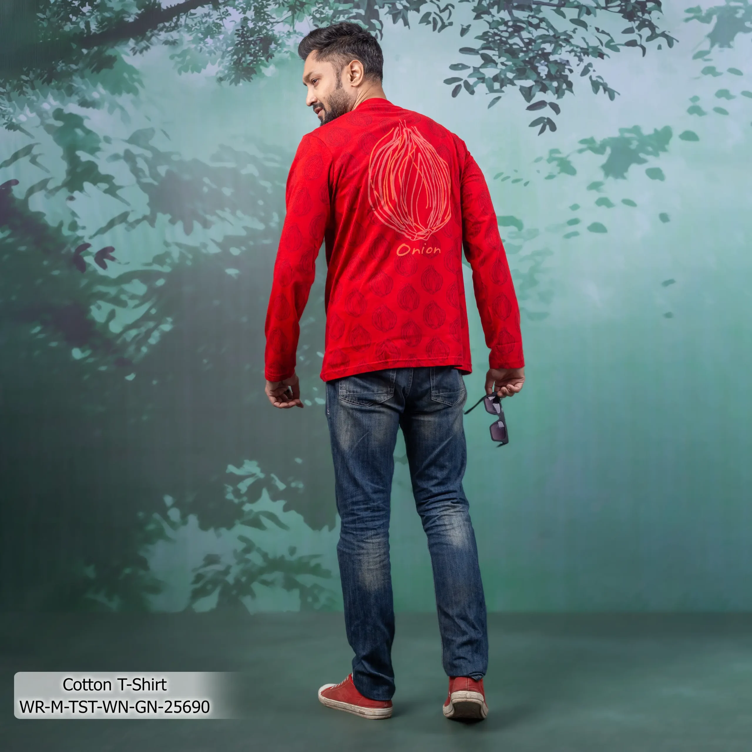 - Product Details: This Cotton men’s full-sleeve t-shirt features screen-print work.