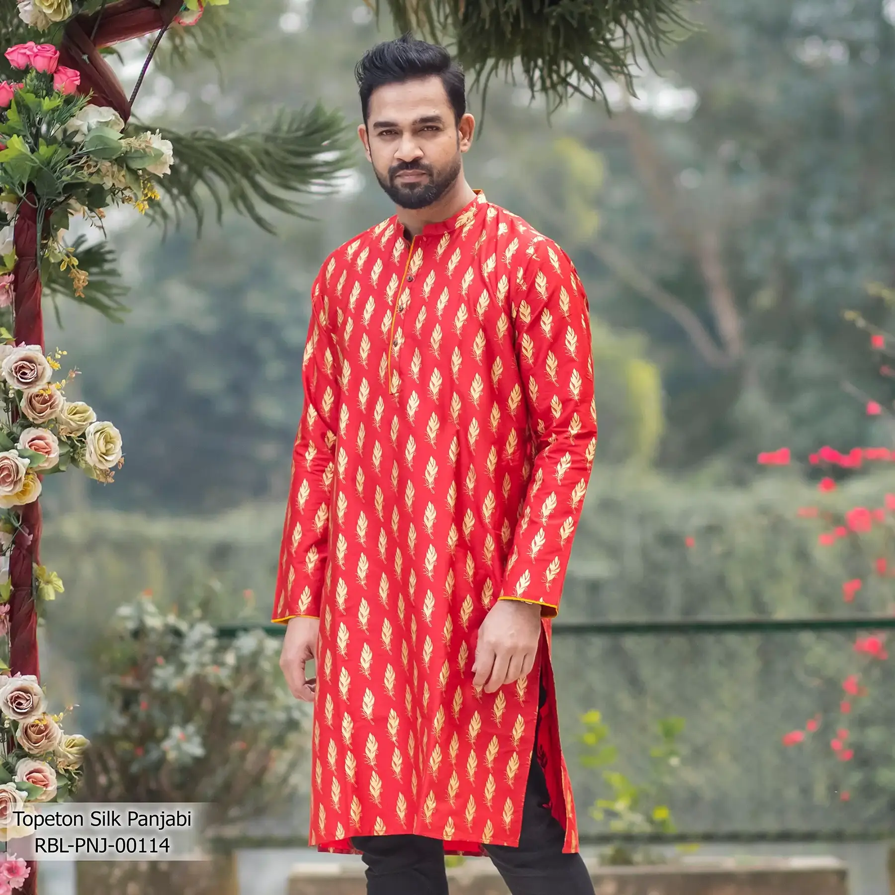 - Product Details: This Topeton-Silk Panjabi features Screen-Print & Patrch-Work.