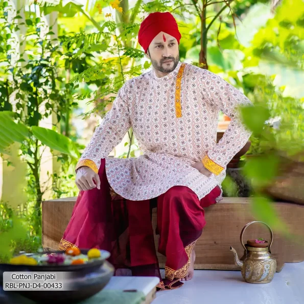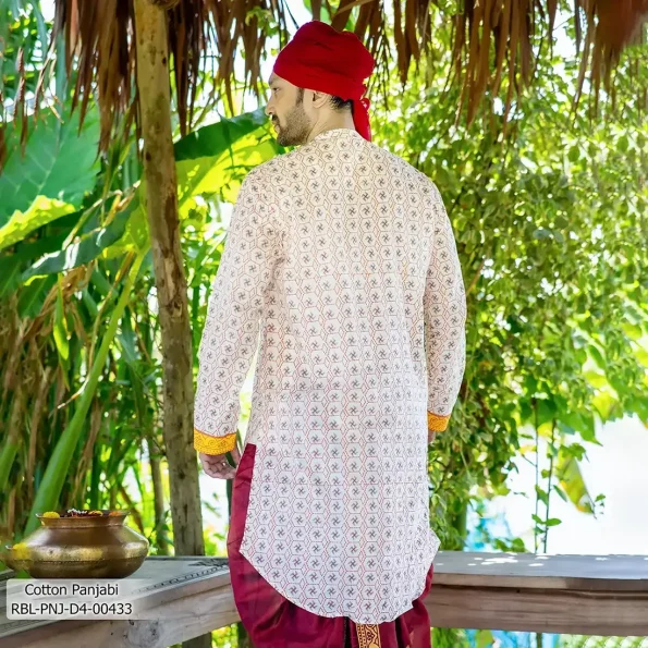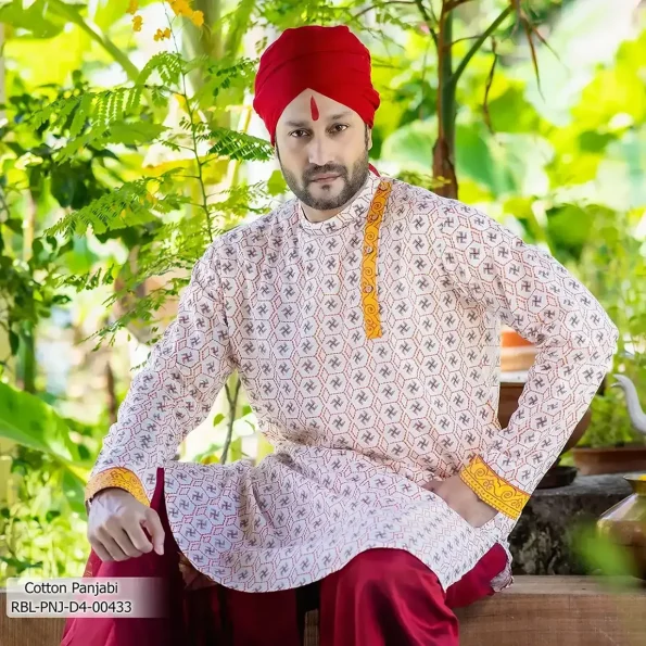 • Product Details: This cotton Panjabi features Screen-Print Patch-Eork.