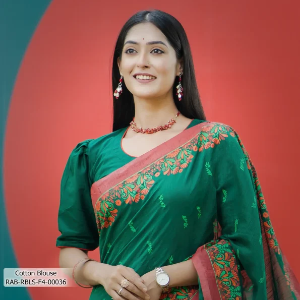 - Product Details: This Cotton women’s ready-blause features screen-print & Patch-Work.