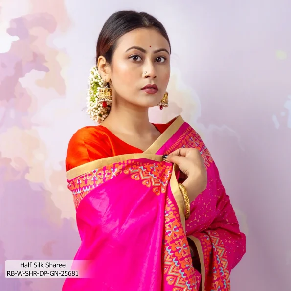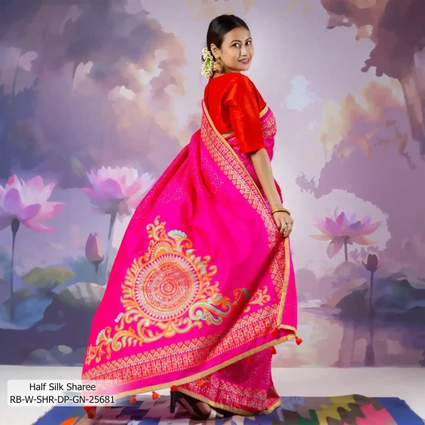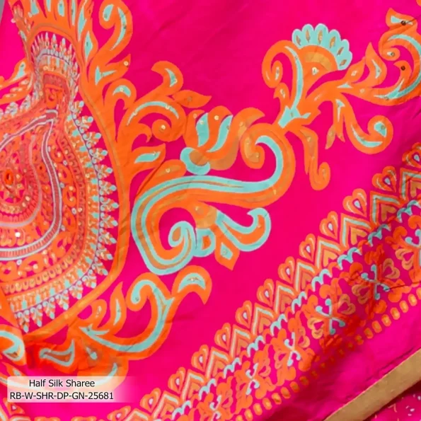 - Product Details: This Half-Silk sharee features Screen-print & Hand-work.