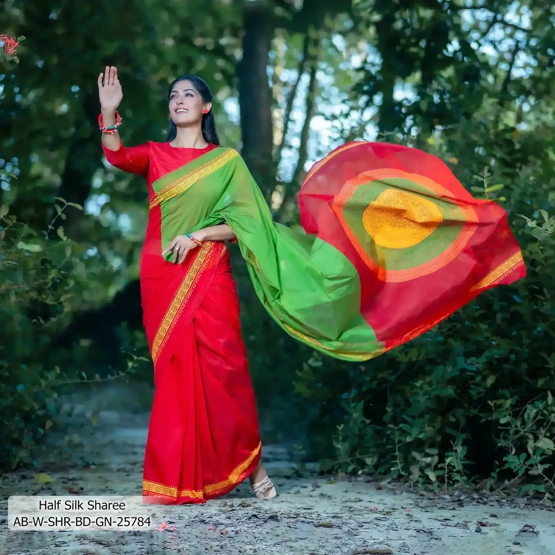 - Product Details: This Half-Silk sharee features Screen-Print & Hand-work.