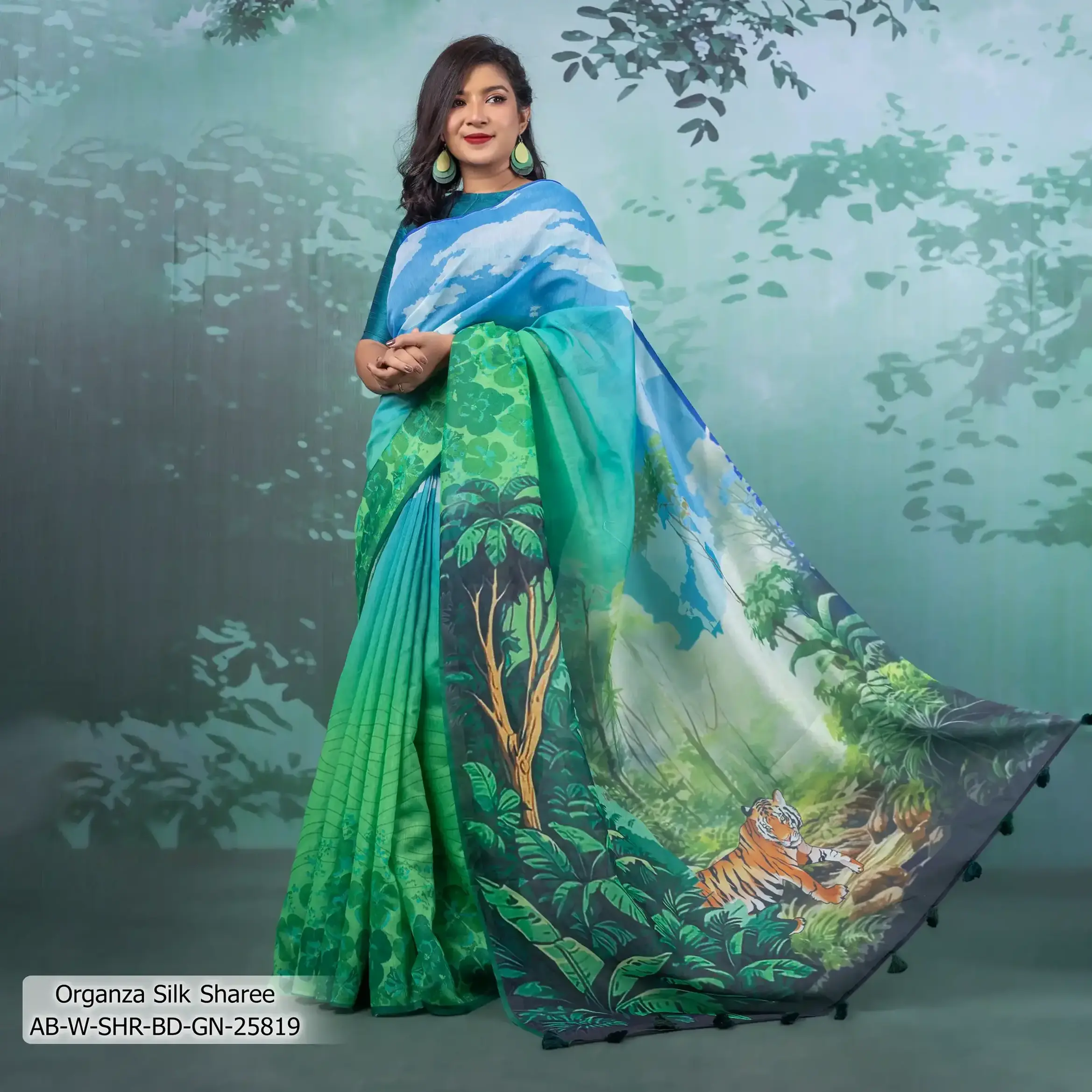 - Product Details: This Organza-Silk sharee features Digital-Print & Hand-Work.