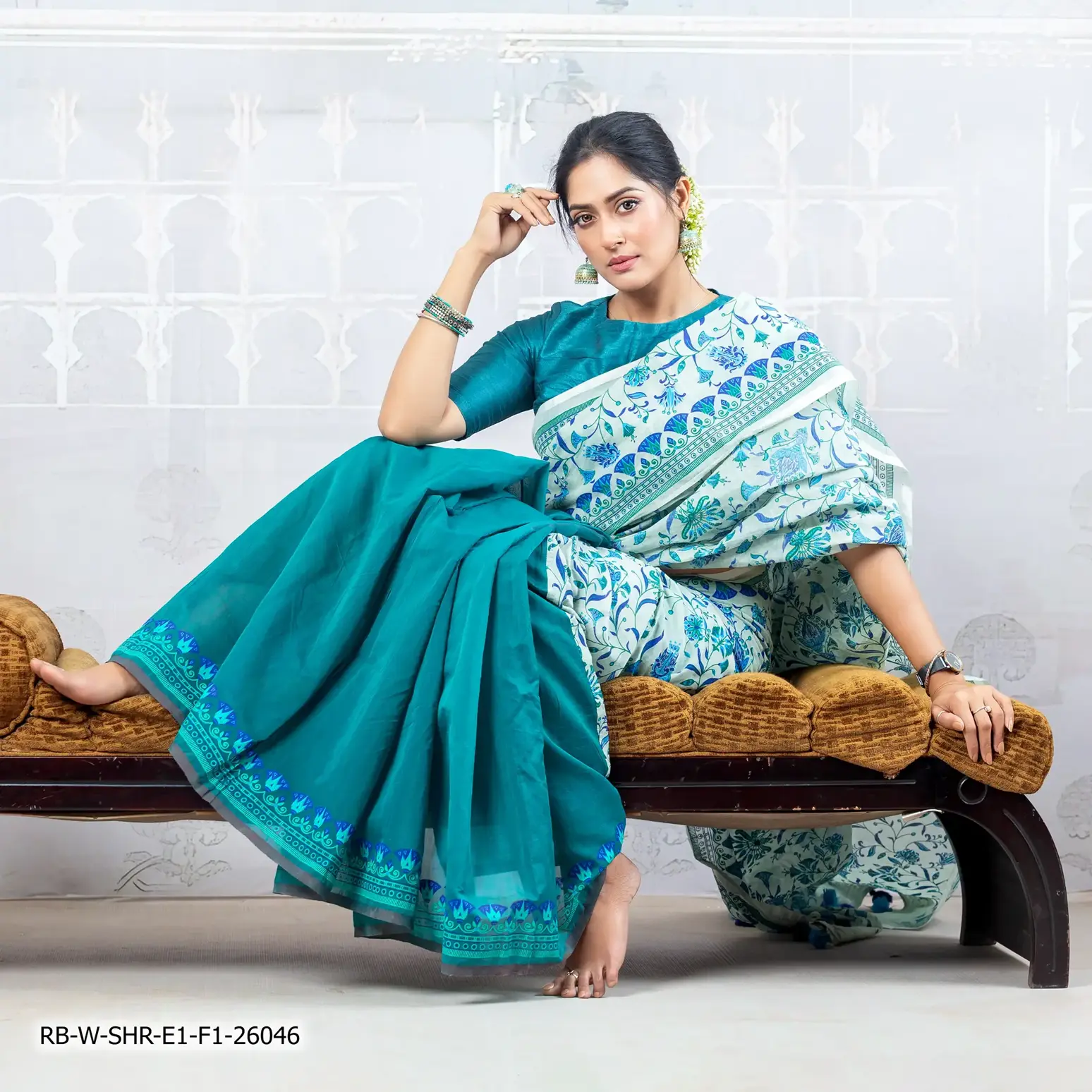 - Product Details: This Jacquard & Slub-Cotton women’s sharee features Screen-Print & Hand-Work.
