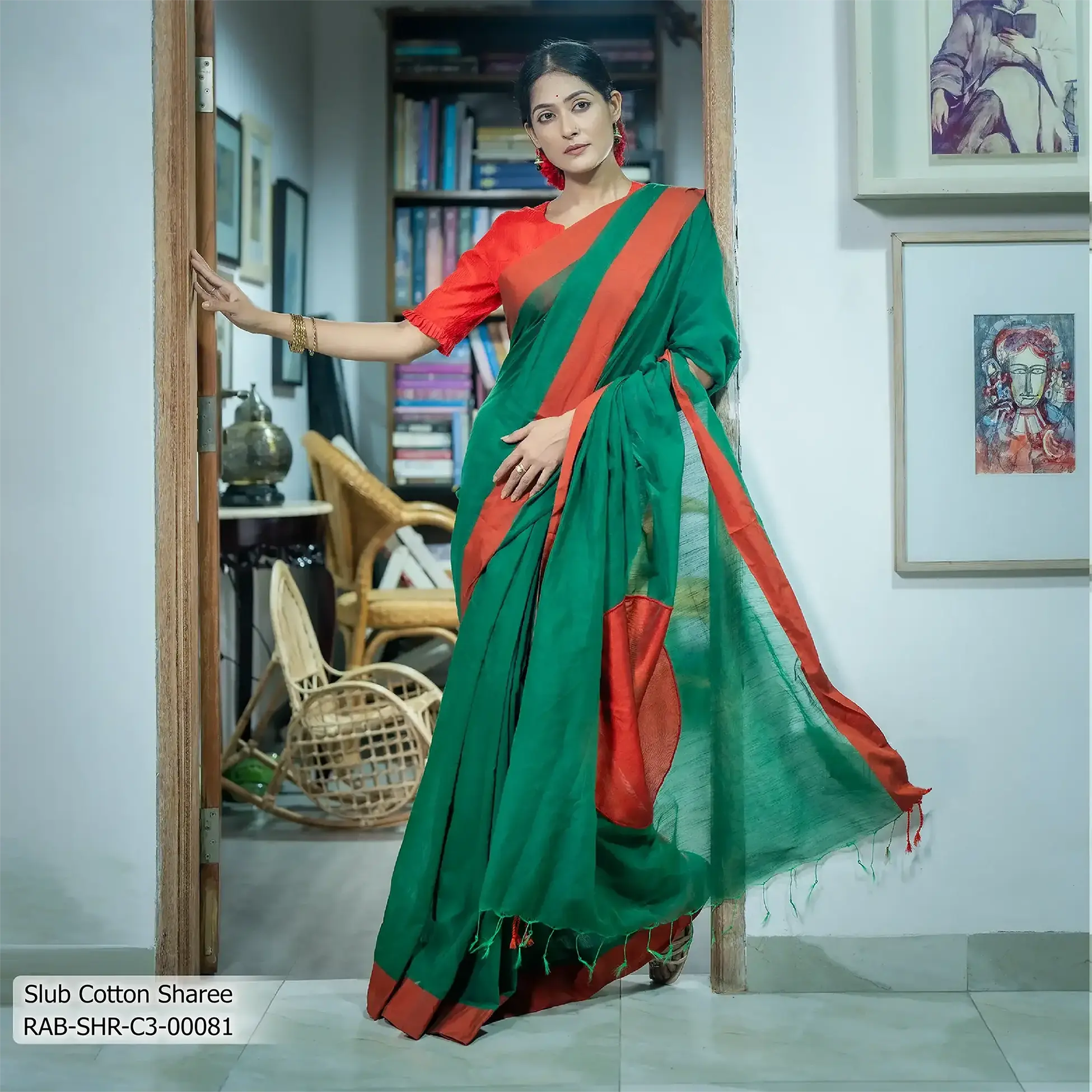 - Product Details: This Slub cotton sharee features Patch-Work .