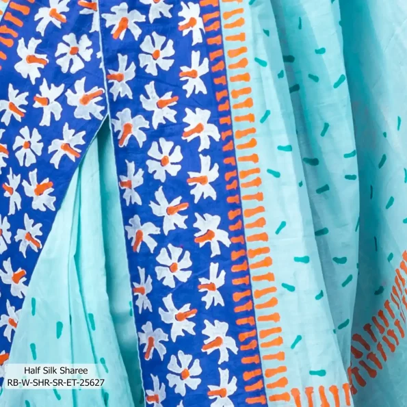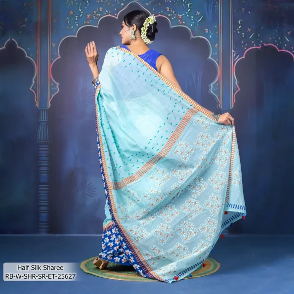 - Product Details: This Half-Silk sharee features Block-Print, Patch-Work & Hand-Work.