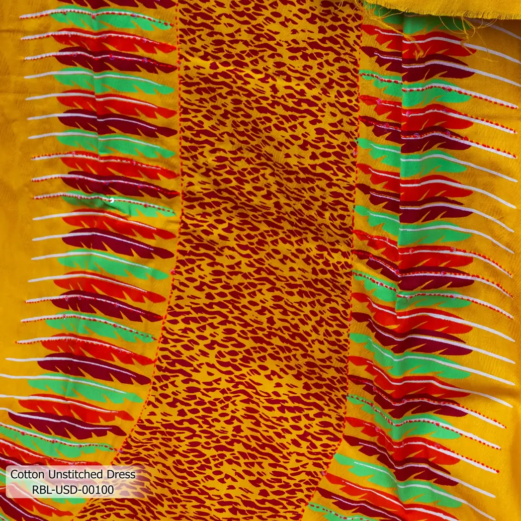 - Product Details: This Cotton Unstitched Dress features Screenprint Handwork work.
